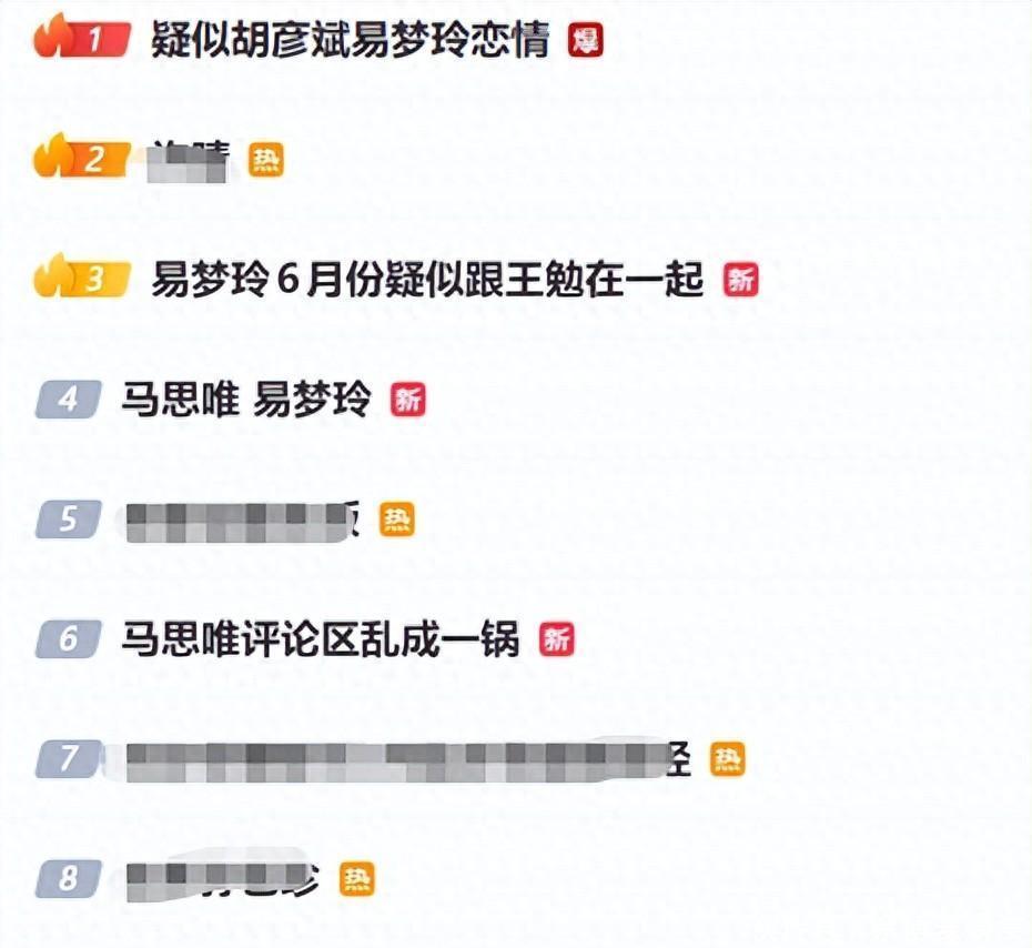 胡彦斌感情经历挺丰富,早年和倪睿思因音乐相恋,后来分手成了他的遗憾;和模特 Linda 传过绯闻,还曾和某爽公开恋情,分手后被对方抹黑,他却从不回应也不诋毁前任,连张靓颖都夸他人品好。近年在情感综艺当观察员被调侃 “理论王者”,没想到悄悄谈起了恋爱。 易梦玲之前和马思唯的恋情轰动一时,男方为她写过不少甜歌,2023 年初分手,后来还和王勉传过绯闻但没下文。看得出来她偏爱才子型伴侣,这次和胡彦斌的跨界组合让人意外。